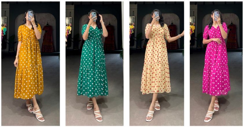 Unveiling Timeless Elegance: The Vintage Polka Dot Georgette Long Frock Collection