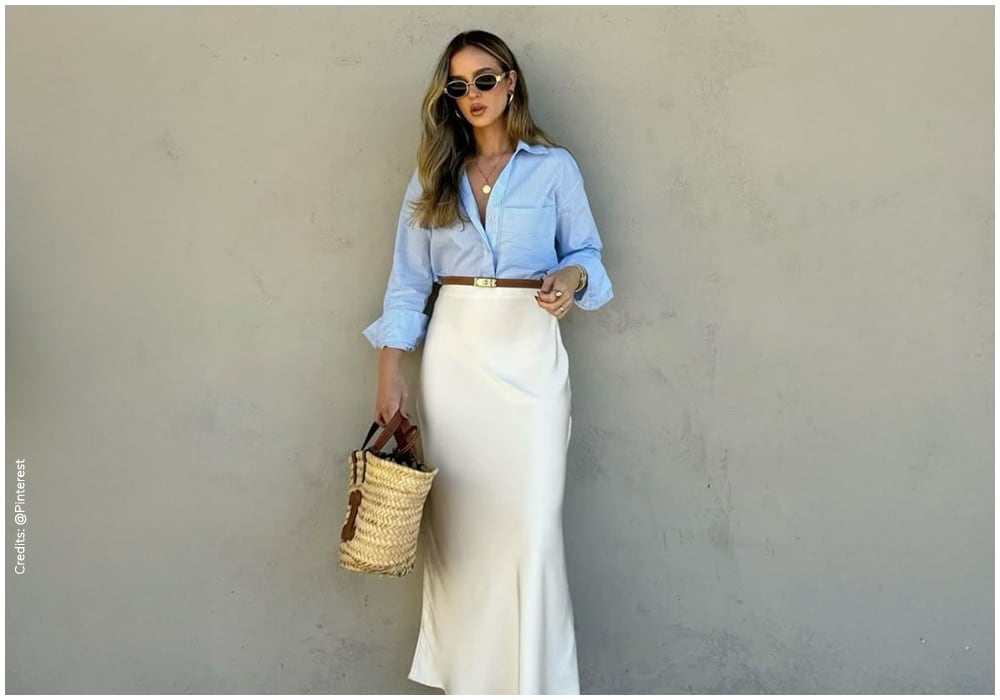 If you have worn dresses before and wish to switch up, formal shirts with long skirts are the next best bet. Pair them with belts to assert subtle feminine power. Beige bags will even elevate your overall look further and give your Palm Sunday looks a push.