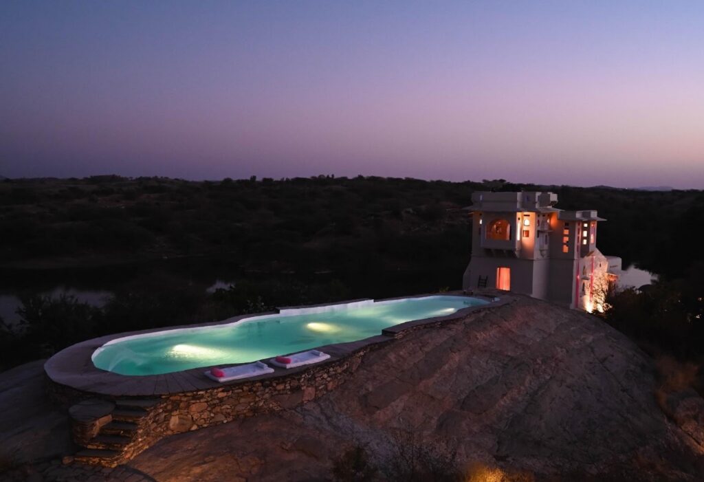 A restored 19th-century hunting lodge in Pali, Brij Lakshman Sagar was originally crafted by Thakur Lakshman Singh Ji of Raipur as a noble retreat. Today, the property is part of the esteemed Small Luxury Hotels of the World (SLH) and has been sensitively restored using a zero-kilometre philosophy and local materials. Spread across 32 acres overlooking a private lake, the retreat offers just twelve independent cottages, allowing for privacy, space, and quiet immersion in the landscape.