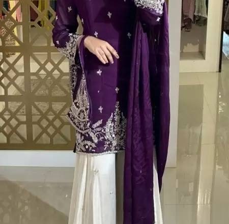 When it comes to making a lasting impression at weddings, parties, or festive celebrations, nothing speaks louder than a stunning outfit that combines elegance, comfort, and luxury. Introducing the Purple Premium Designer Party Wear Heavy Chinon Silk Top, Palazzo & Dupatta Set – a masterpiece designed to make you the center of attention wherever you go. This ensemble is not just an outfit; it’s a statement of style, sophistication, and timeless beauty. Why Choose This Premium Designer Set? Crafted with utmost precision, this ready-to-wear collection is perfect for those who refuse to compromise on quality or style. The set includes a Heavy Chinon Silk Top, Palazzo, and a Dupatta, each designed to complement the other seamlessly. Whether you’re attendi...